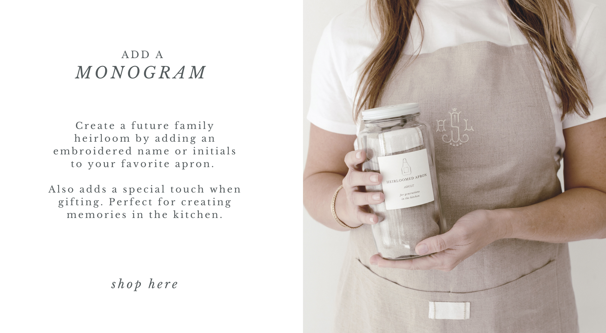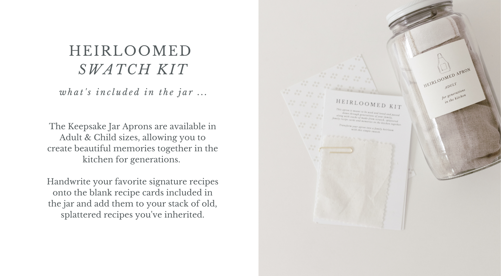 Our Apron in a Jar is one of the original heirloom gifts that launched our brand, first introduced as part of our legacy line, IceMilk Aprons. Rooted in tradition and designed with purpose, this timeless keepsake is more than just an apron—it’s a vessel for stories, memories, and the everyday moments that become cherished over time.